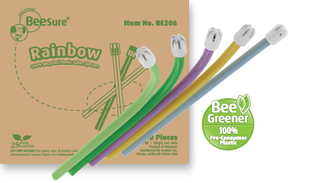 Rainbow Saliva Ejectors have iron wire reinforced tubing making it easily bendable and able to hold its shape. Made with 100% pre consumer recycled plastic, the fixed soft tip with smooth edges provides patient safety and comfort. Available in green, blue, teal, lavender, and yellow colors.