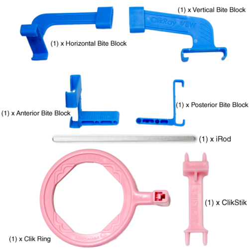 Includes ClikStik™ holder, ring, rod and assorted Bite Blocks
