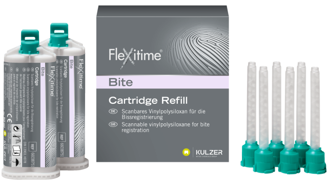 Flexitime Bite is a scannable bite registration material that is suitable for both universal bite registration and powder-free optical data recording of the antagonists for CAD/CAM technology, e.g. for fabrication of all-ceramic restorations.