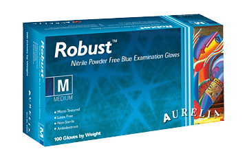 Aurelia® Robust™ Blue Nitrile (Non-Latex) Powder Free Examination Gloves are made from 100% Nitrile (Non-Latex), ambidextrous, blue color, fully microtextured and non-sterile. Aurelia gloves conform and are tested to the highest international standards.