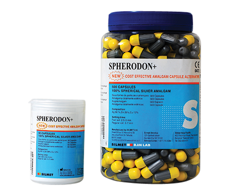 Spherodon Plus amalgam 500/pk - Silmet is an ultra-fine spherical ternary which is formulated as a single composition. Utilizes modern resin technology which gives it unique dimensional stability and corrosion resistance in restorations. Composed of 100% spherical alloys, 60% Ag with a high copper content in a non-gamma II phase.