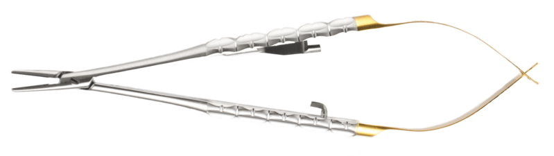 Designed for firmly and securely holding and guiding small needles during suturing.